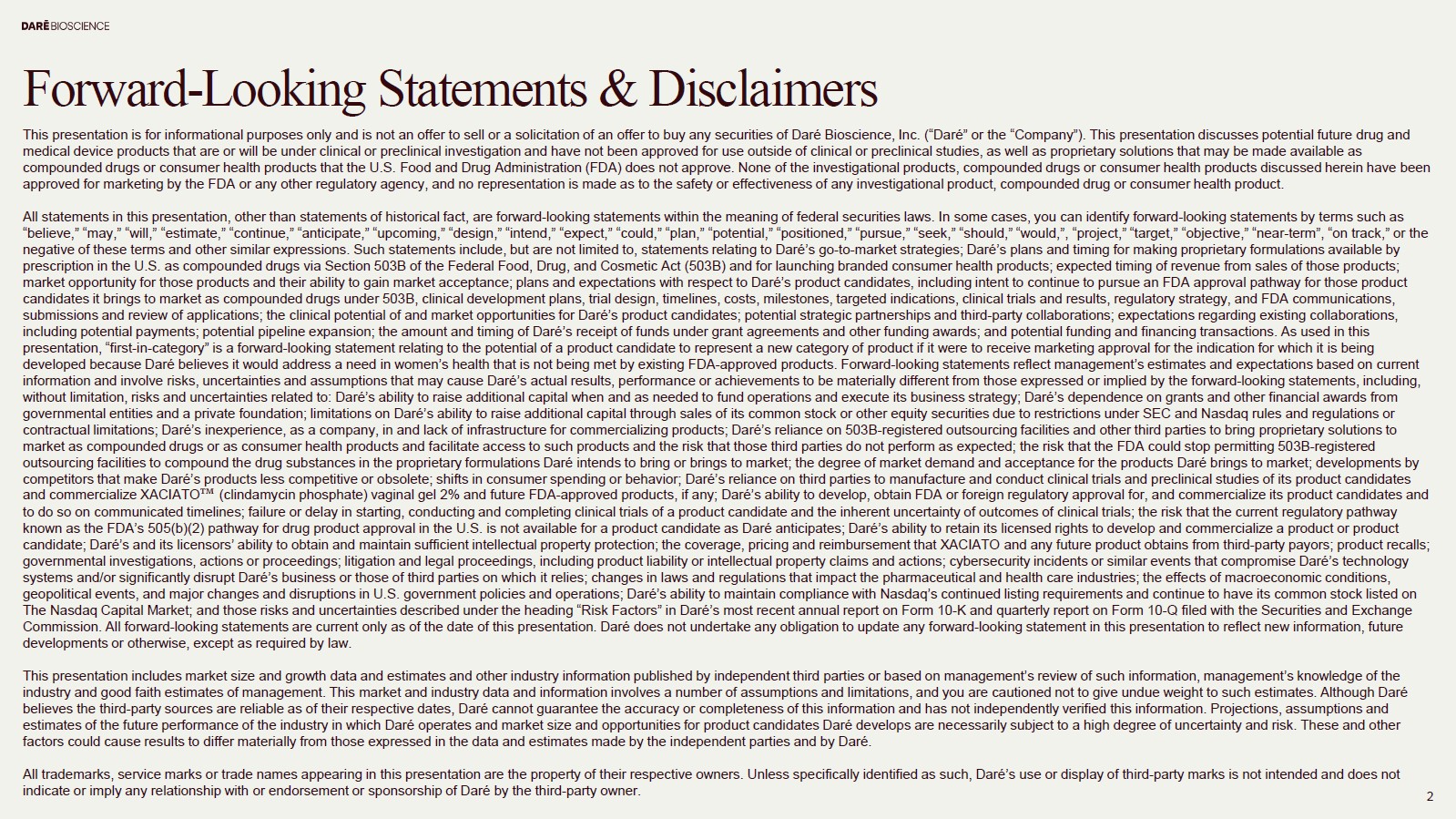 DARÉ BIOSCIENCE, INC.